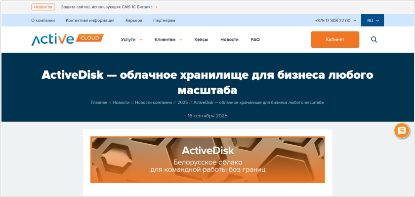 Компания ActiveCloud представила сервис ActiveDisk — облачное хранилище для бизнеса, которое обеспечивает надёжное хранение данных, мгновенный и контролируемый обмен файлами и полноценную совместную работу как внутри компании, так и с внешними пользователями (клиентами или подрядчиками). В отличие от других популярных решений, вся инфраструктура находится в Беларуси, но при этом доступ к данным в облачном хранилище возможен с любого устройства из любой точки мира. В состав сервиса входит офисный пакет Collabora с возможностью совместного редактирования в режиме реального времени, поддерживающий все основные форматы, просмотрщик Imaginary для предпросмотра популярных форматов изображений. Есть интеграция с Active Directory. Стоимость начинается от 50 руб./месяц за 50 Гб.
