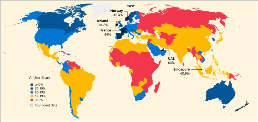 В свежем докладе Microsoft, посвященном исследованию использования ИИ в мире, в частности, отмечен стремительный рост китайской нейросети DeepSeek, которая получила заметное преимущество в странах, где доступ к западным ИИ-сервисам ограничен или затруднён. Стартап предложил полностью бесплатного чат-бота без подписки и платных функций, тем самым устранив как финансовые, так и технические барьеры для доступа. Наибольшая популярность DeepSeek зафиксирована в Китае, России, Иране, Кубе и Беларуси. В Китае уровень распространения DeepSeek составляет 89%, в Беларуси — 56%. Это даже больше, чем в России — 43%.