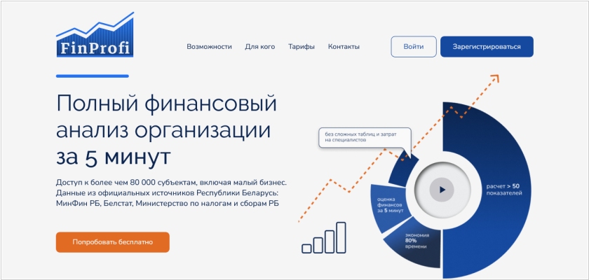 Сервис FinProfi предоставляет доступ к базе данных из более чем 80 000 организаций (включая малые бизнесы) для быстрой проверки финансового состояния. Данные берутся из официальных источников Республики Беларусь: МинФин РБ, Белстат, Министерство по налогам и сборам РБ. Сервис предоставляет всеобъемлющий финансовый анализ платежеспособности, финансовой устойчивости, источников финансирования, ключевых активов, деловой активности, вероятности банкротства. На основе этой информации руководитель может принимать решения о целесообразности заключения договоров с контрагентами, предоставления им отсрочки платежа. Стоимость 70 белорусских рублей за 1 запрос в базу данных.