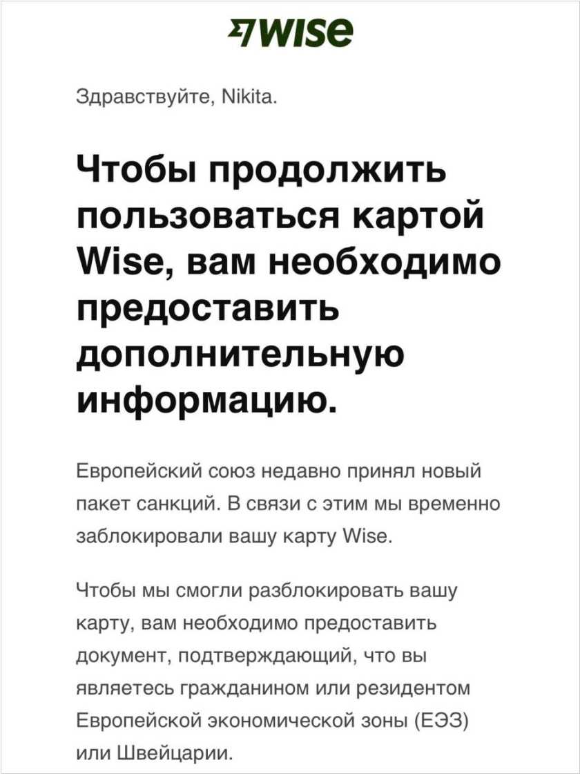 2025. Wise заблокировал счета белорусам без ВНЖ в Европе