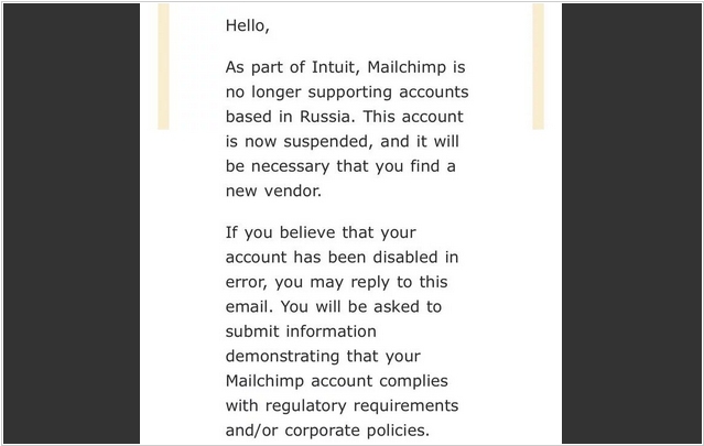 2022. Сервис для рассылок Mailchimp начал отключать аккаунты белорусских пользователей