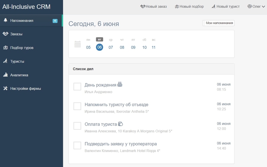 Украинская CRM для турагентства. Позволяет делать подборки на сайте любого ТО, на Айтитуре, Турсканере, и даже на Букинге. Сервера расположены в европейском облаке, а контактные данные туристов хранятся в зашифрованном виде